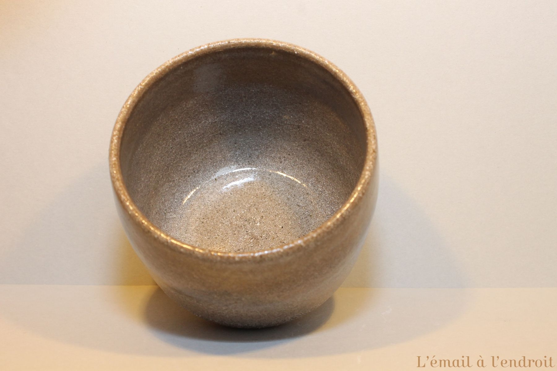 Ce bol gris beige est en grès, de taille moyenne . Et comme tous les articles issus de cette fournée, un aspect très légèrement granuleux lisse le rend agréable au toucher. De plus, il est très agréable en main.